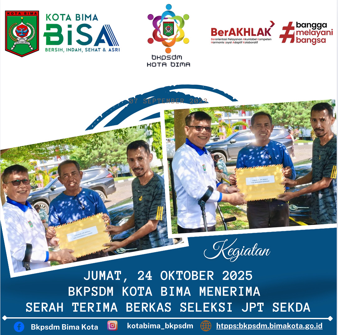 Jumat, 24 Oktober 2025 BKPSDM Kota Bima Menerima Serah Terima Berkas Seleksi JPT Sekretaris Daerah Kota Bima.