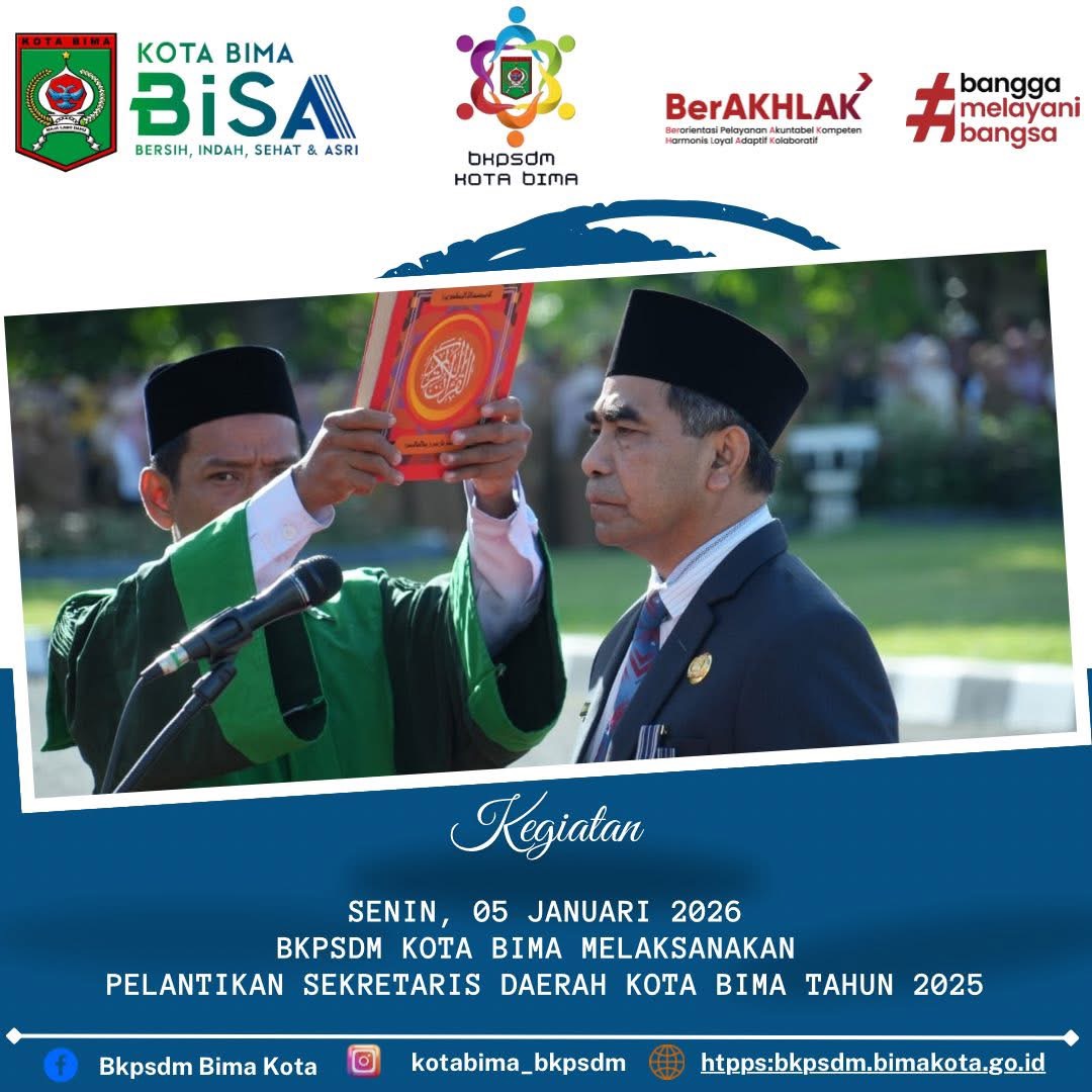 Senin 05 Januari 2026 bertempat di Halaman Kantor Wali Kota Bima. Wali Kota Bima H. A. Rahman H. Abidin, SE, secara resmi melantik dan mengambil sumpah jabatan Pimpinan Tinggi Pratama Sekretaris Daerah Kota Bima.
