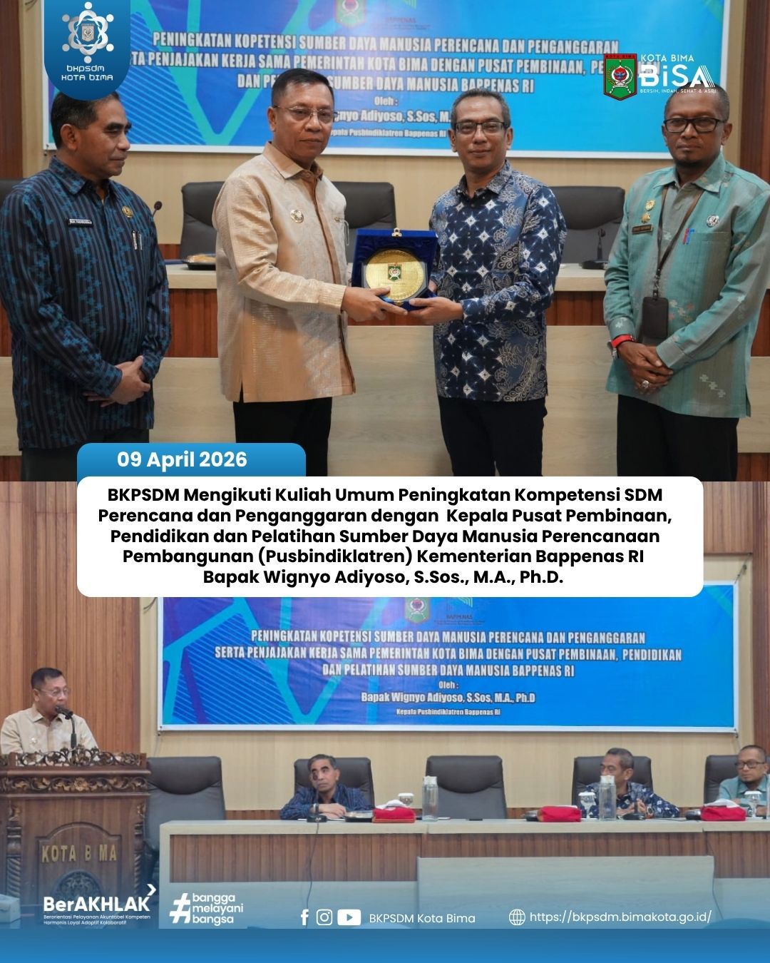 BKPSDM KOTA BIMA MENGIKUTI KULIAH UMUM PENINGKATAN KOMPETENSI SDM PERENCANA DAN PENGANGGARAN DENGAN KEPALA PUSBINDIKLATREN KEMENTRIAN PPN/BAPPENAS RI DI KOTA BIMA